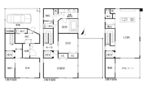 3階建3LDK+Sの間取り